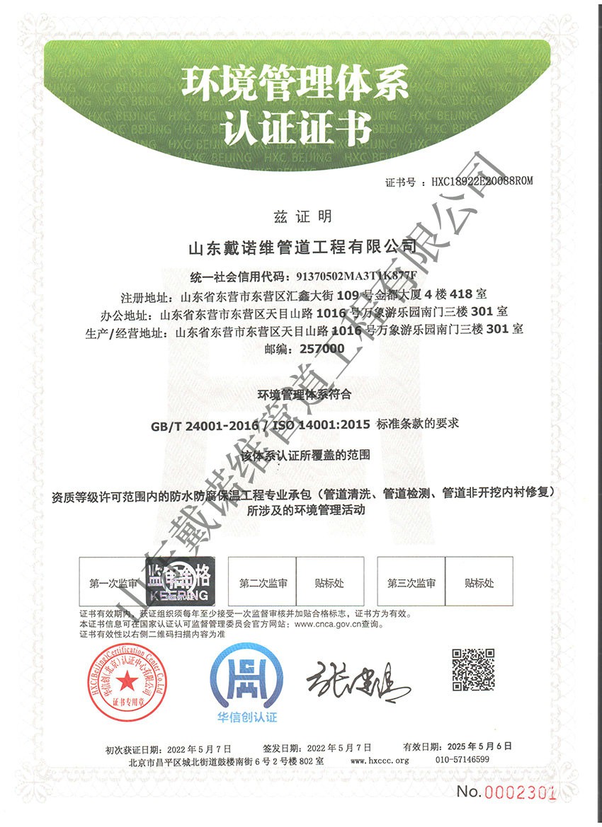 管道非開挖修復工程服務企業(yè)資質證書